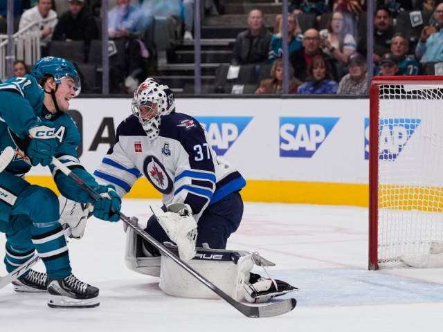 Will Smith crashed the crease and found the back of the net in the final minutes of the third to secure a 2-1 victory for the San Jose Sharks over the Winnipeg Jets. Macklin Celebrini notched a goal and an assist in the win.